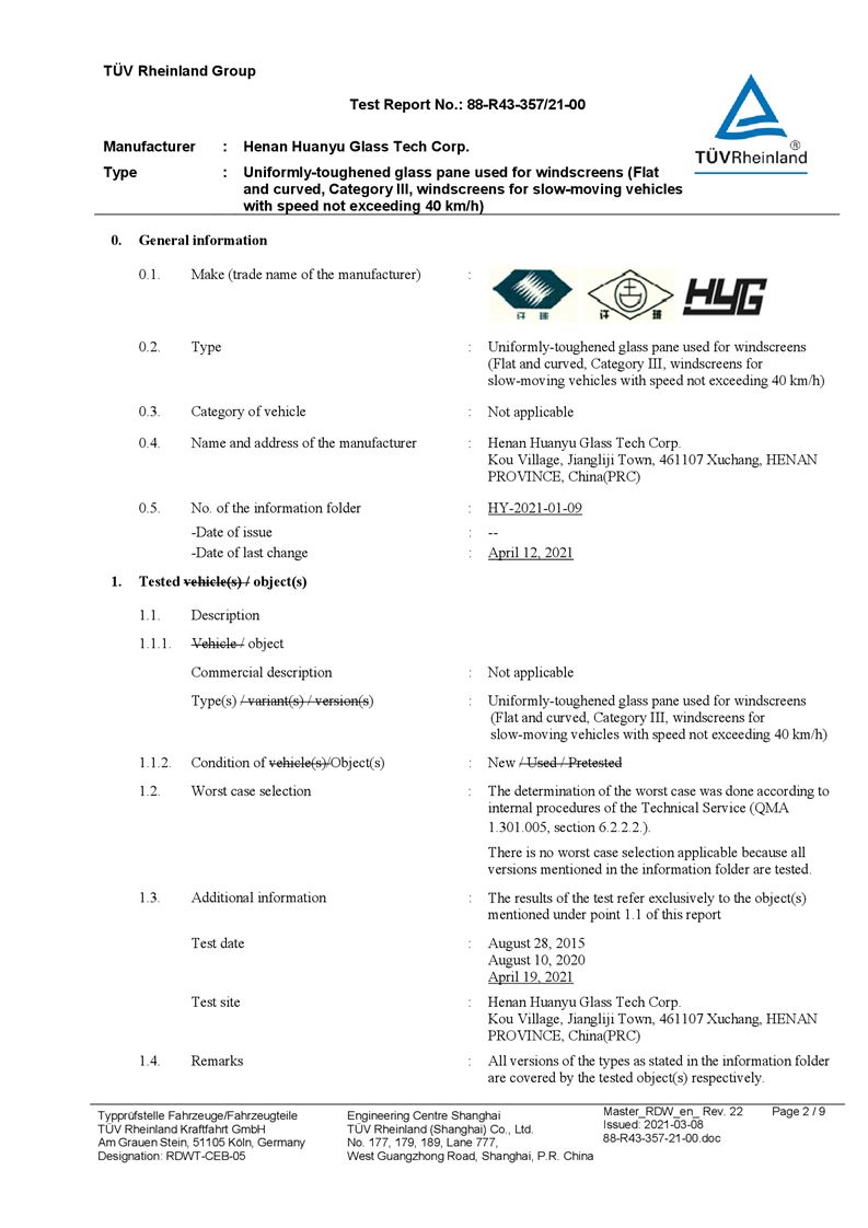 河南環(huán)宇玻璃科技股份有限公司年產(chǎn) 5 萬平方米驗收報告公示